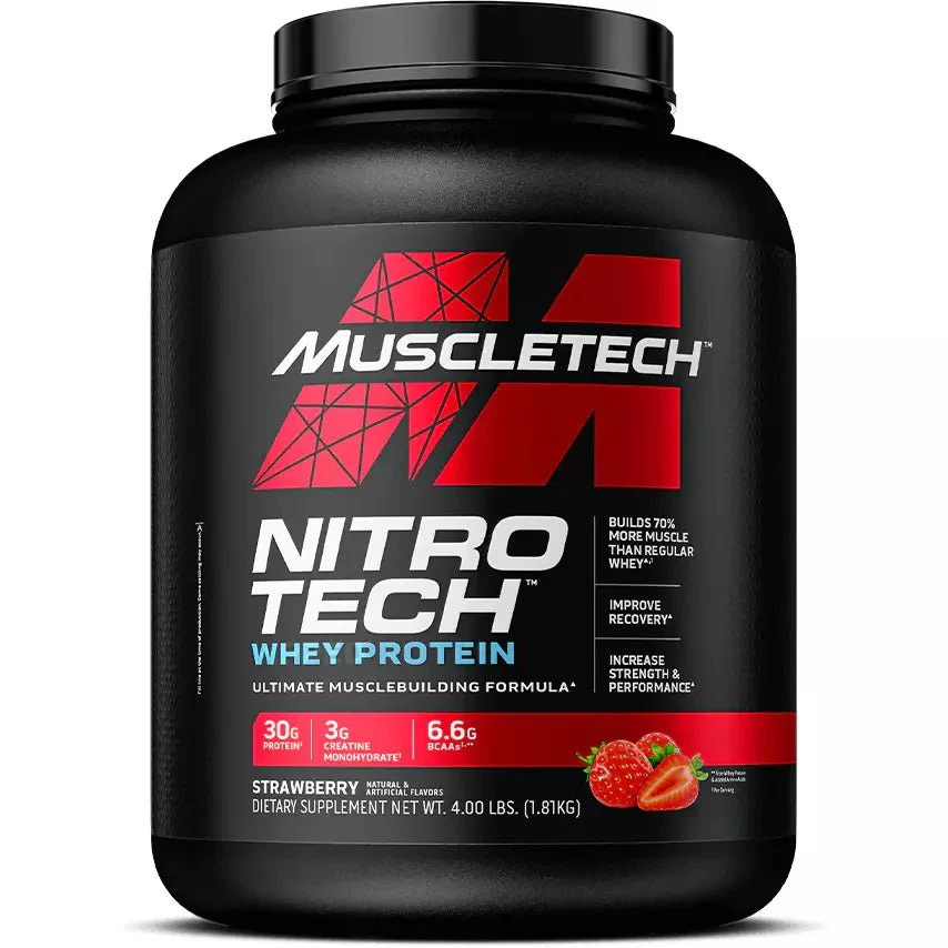 Nitro-Tech est une formule unique car elle contient non seulement de la whey isolate mais également de nombreux acides aminés qui viennent renforcer ses effets. MuscleTech a réalisé de nombreux tests sur des athlètes qui ont permis de démontrer que la prise de Nitro-Tech permet une augmentation plus rapide de masse musculaire par rapport à une whey protéine non enrichie en créatine. Il a été prouvé que les protéines contribuaient au maintien et développement de la masse musculaire et que la créatine pouvait améliorer les capacités physiques en cas de séries successives d’exercices très intenses et de courte durée. Les effets de la créatine sont valables à partir d’un apport de 3g par jour, soit la dose contenue dans une portion de Nitro-Tech.